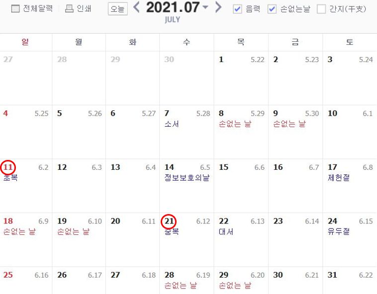 2021년 초복 중복 말복 날짜생활정보 2021. 4. 25. 19:20