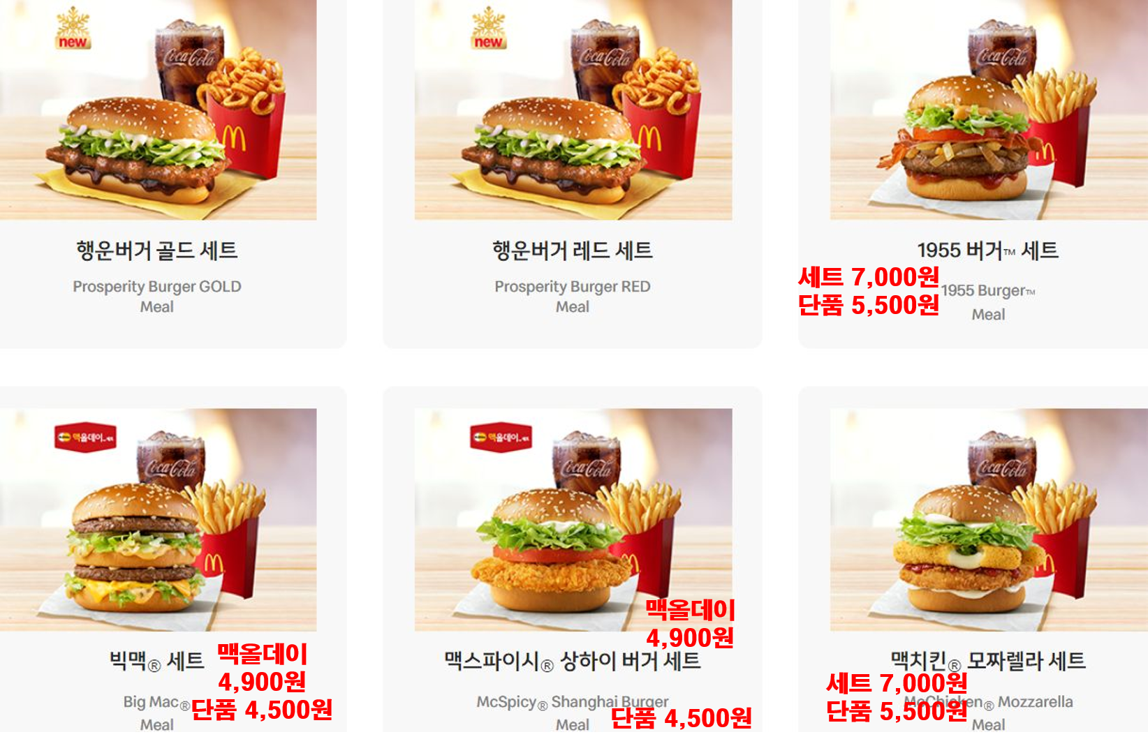 맥도날드 메뉴 가격