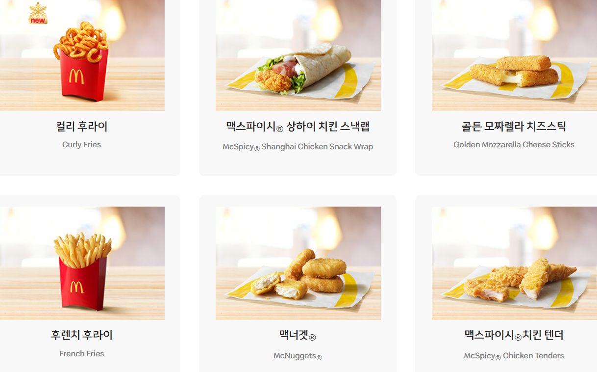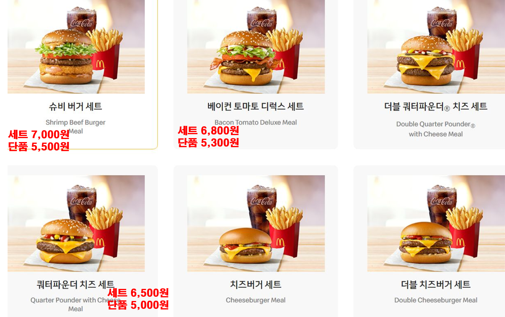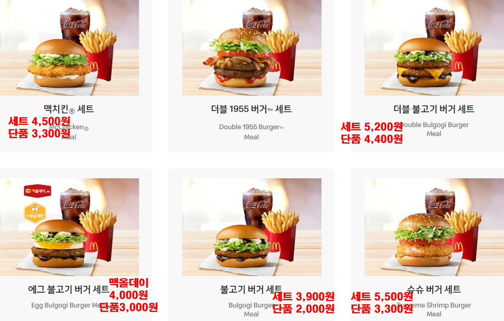 • 맥도날드 메뉴 가격