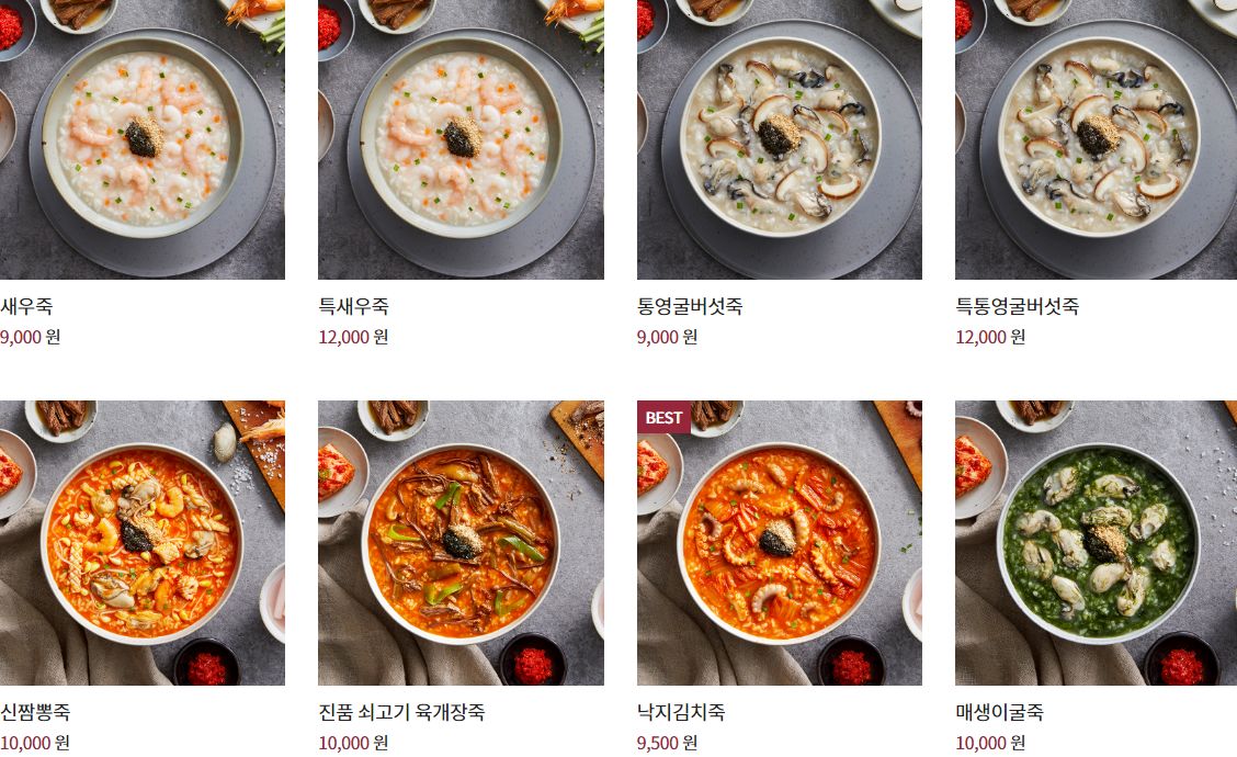 본죽에서 가장 유명한? 베스트 메뉴는 아마 장조림이 아닐까? 생각도 했지만 장조림은 반찬으로 일단 빼고 본죽 메뉴 중 베스트 메뉴는 쇠고기 야채죽과, 전복죽, 삼계죽, 불낙죽, 쇠고기 버섯죽 등이 있습니다.