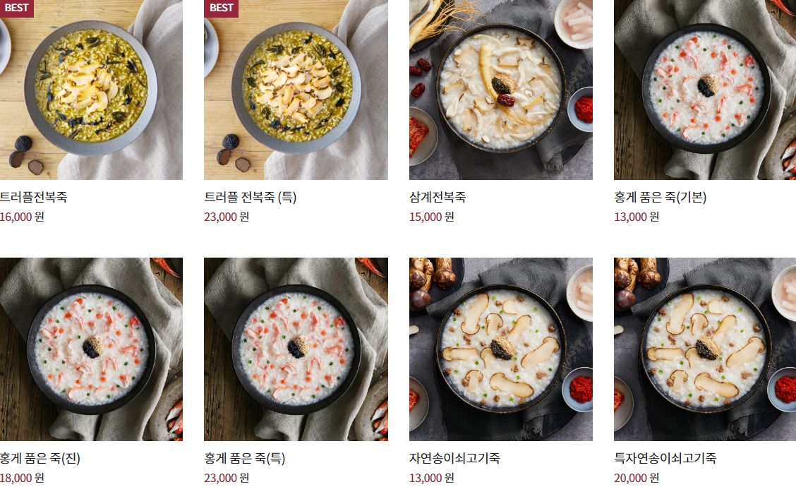 본죽 메뉴 가격