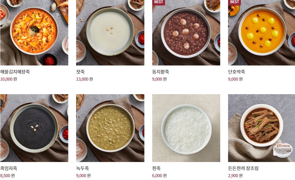 본죽에서 가장 유명한? 베스트 메뉴는 아마 장조림이 아닐까? 생각도 했지만 장조림은 반찬으로 일단 빼고 본죽 메뉴 중 베스트 메뉴는 쇠고기 야채죽과, 전복죽, 삼계죽, 불낙죽, 쇠고기 버섯죽 등이 있습니다.