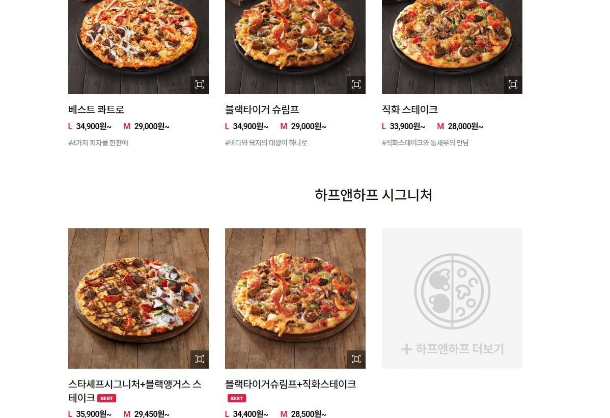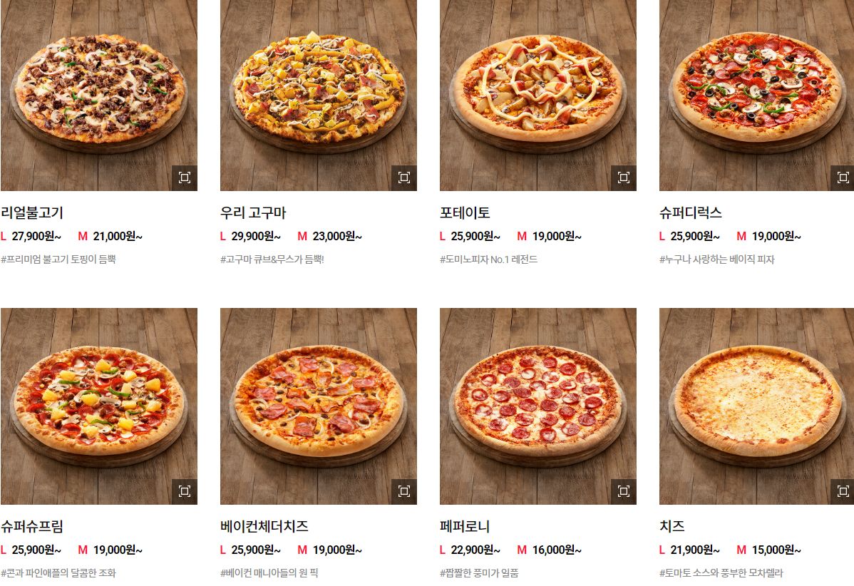 도미노피자 메뉴가격