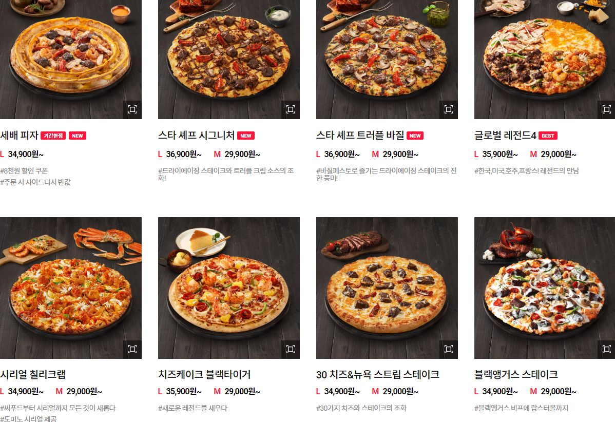 도미노피자 메뉴가격