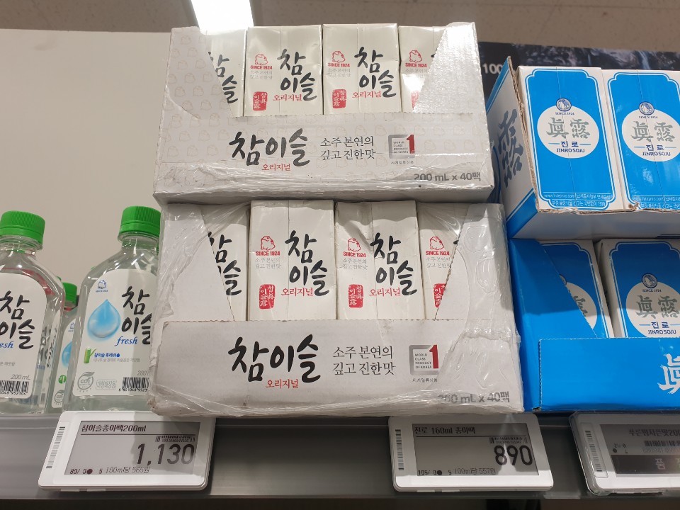 참이슬 종이팩 200ml 1개당 가격은 1,130원이며, 진로 160ml 종이팩 가격은 1팩당 890원 입니다.
