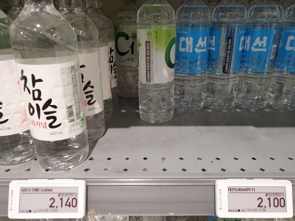 시원소주 패트 가격도 2,140원, 대선 640ml 패트 가격은 2,100원 입니다.