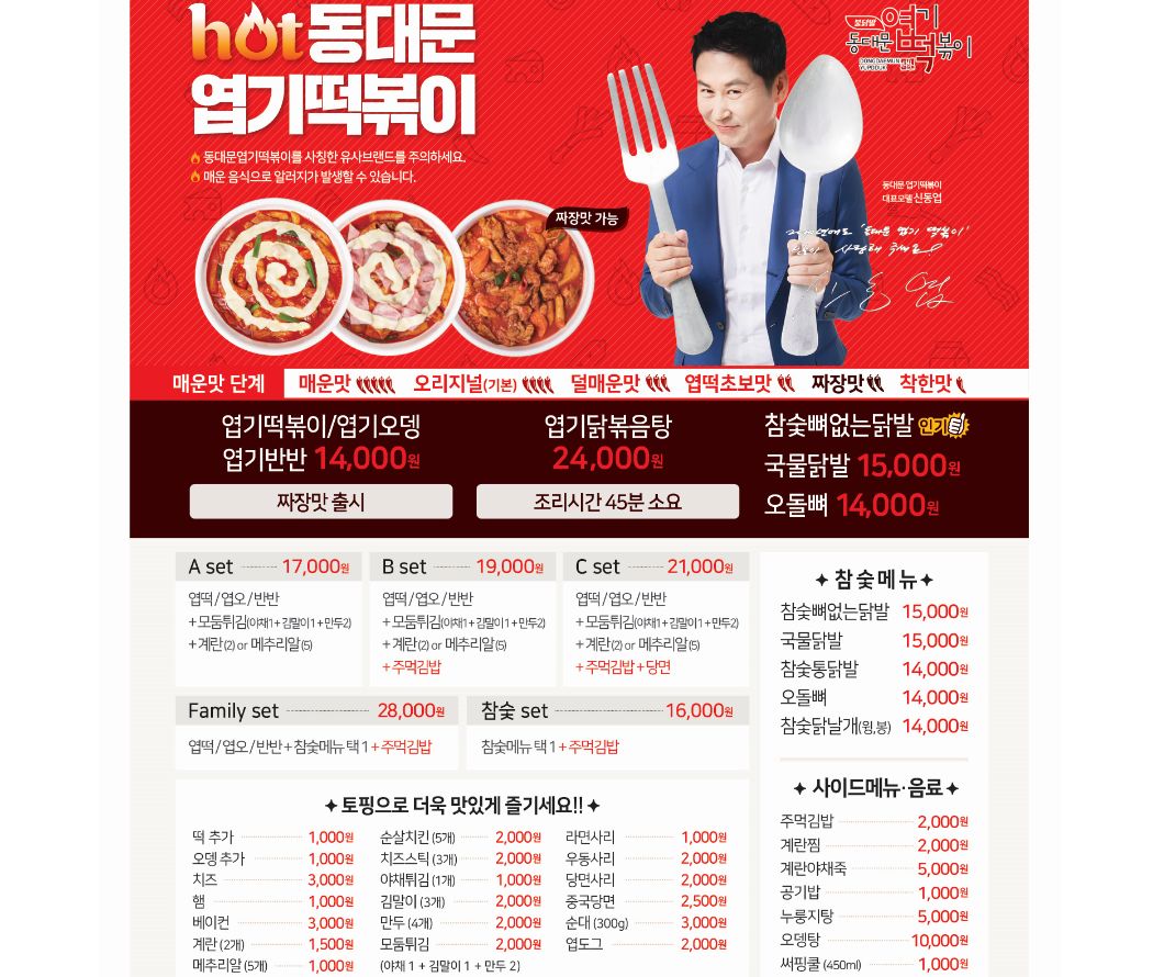 동대문 엽기떡볶이는 2002년부터 시작하여 지속적인 메뉴 개발을 통하여 떡볶이의 새로운 문화를 선도하는 브랜드가 되도록 노력하는 기업이라고 해요. 세상에 매운 음식은 많지만 맛있게 매운 음식으로 수 많은 고객들을 매니아로 사로 잡은 동대문 엽기떡볶이 메뉴와 가격에 대하여 알아보도록 할게요.