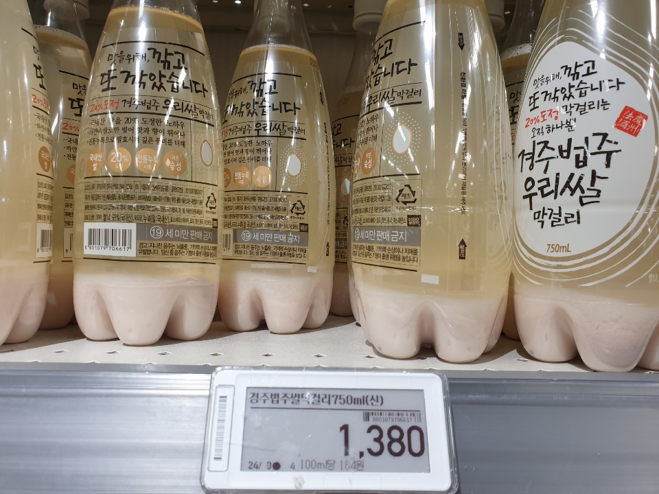 경주 법주 쌀막걸리 가격은 750ml에 1,380원이며, 100ml 당 가격은 184원 입니다. 위 사진에 나온 경주 법주 쌀막걸리 가격은 이마트이며, 이마트 매장마다 가격이 상이할 수 있으니 참고용으로만 확인하는 것이 좋을것 같습니다.